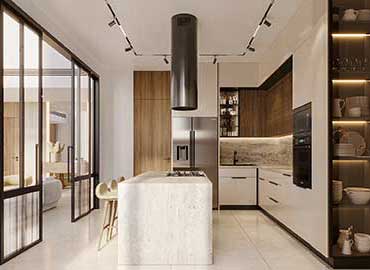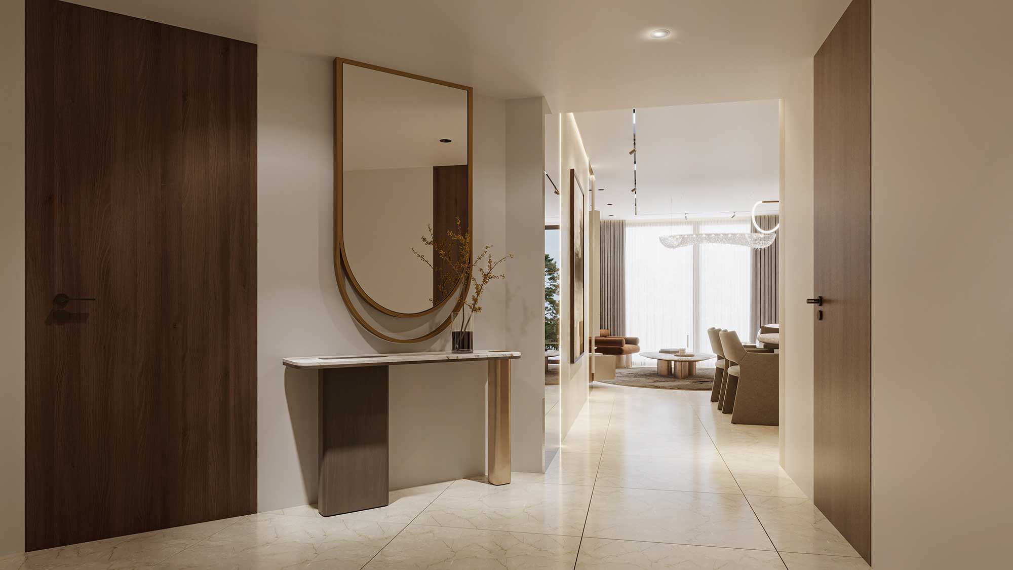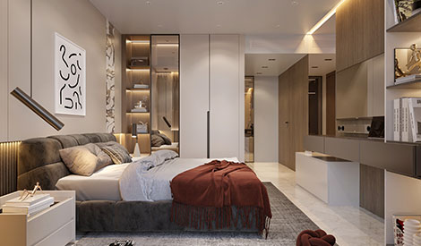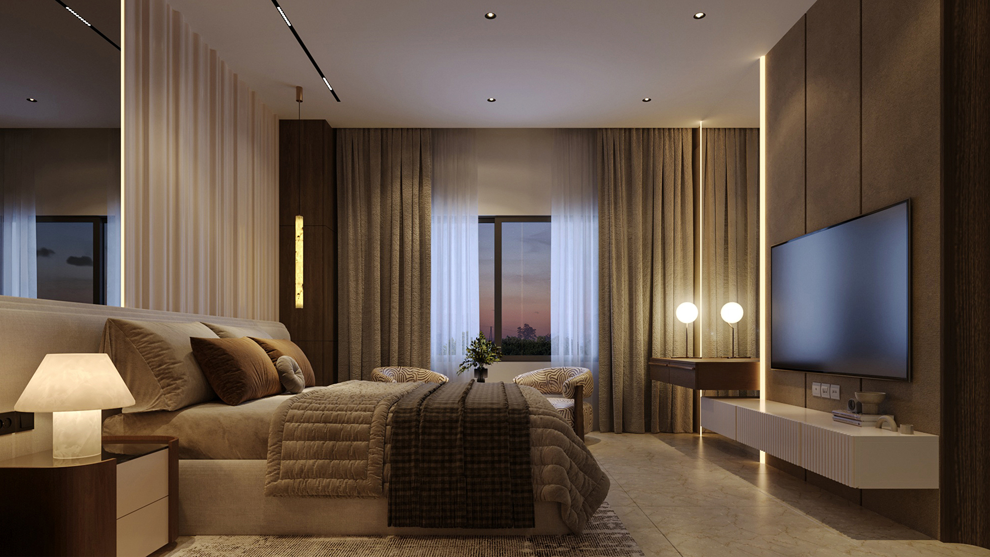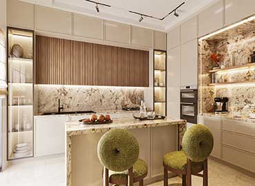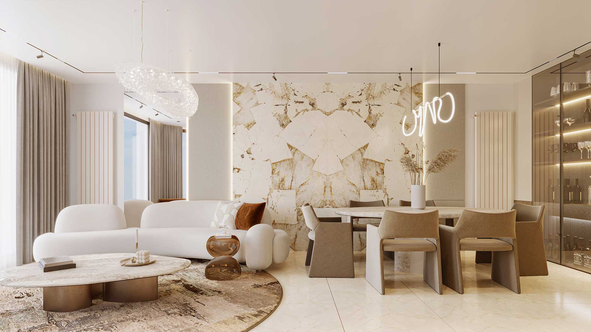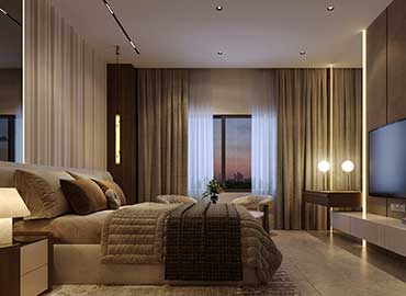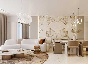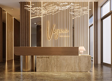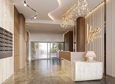 Les salons de la résidence Vogue sont de véritables chefs-d'œuvre de design, alliant élégance et confort. Avec leurs hauts plafonds ornés d'un éclairage encastré, leurs sols en porcelaine de qualité supérieure et leurs balcons spacieux, ces espaces offrent une atmosphère accueillante et raffinée. Chaque détail est pensé pour créer un cadre de vie luxueux et convivial.