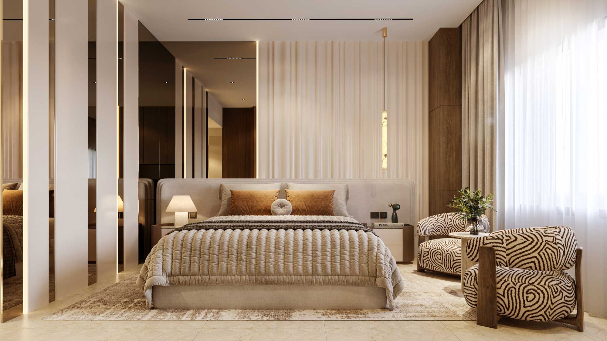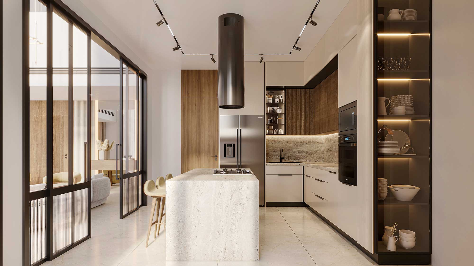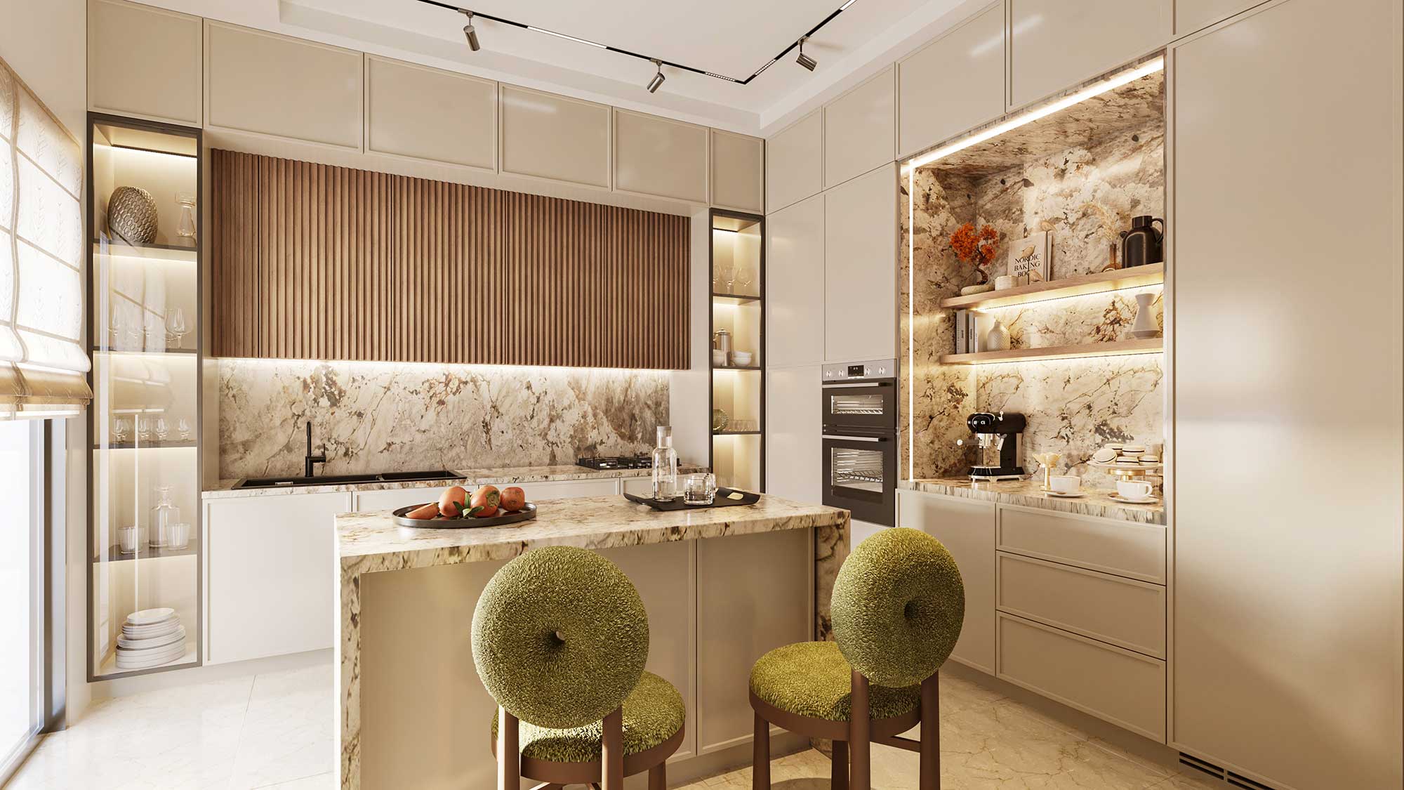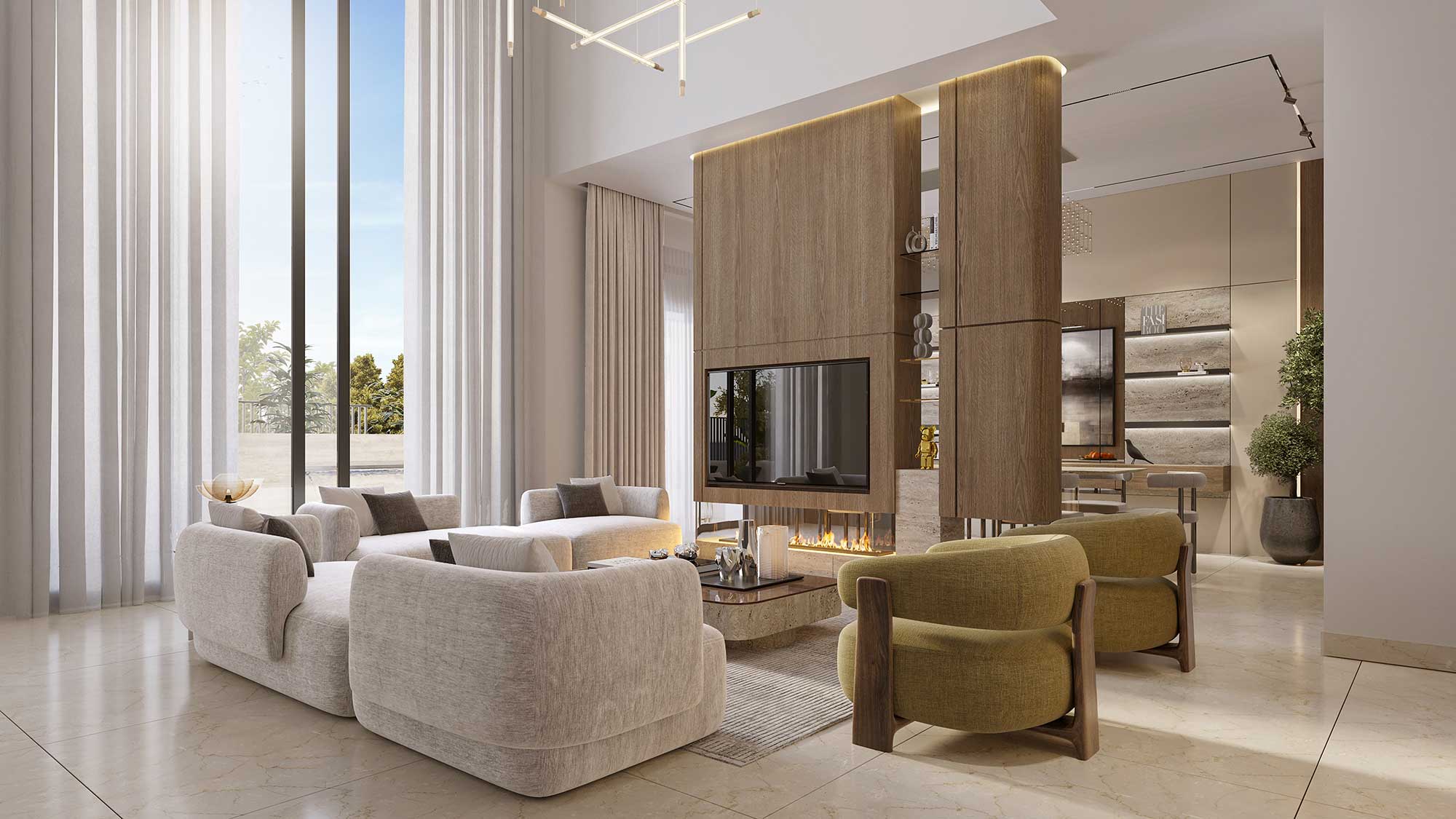 Les salons de la résidence Vogue sont de véritables chefs-d'œuvre de design, alliant élégance et confort. Avec leurs hauts plafonds ornés d'un éclairage encastré, leurs sols en porcelaine de qualité supérieure et leurs balcons spacieux, ces espaces offrent une atmosphère accueillante et raffinée. Chaque détail est pensé pour créer un cadre de vie luxueux et convivial.