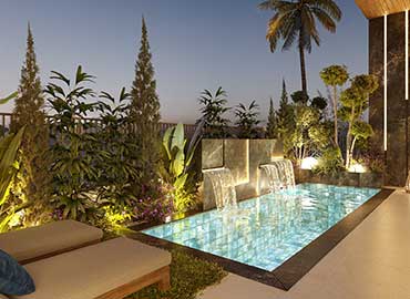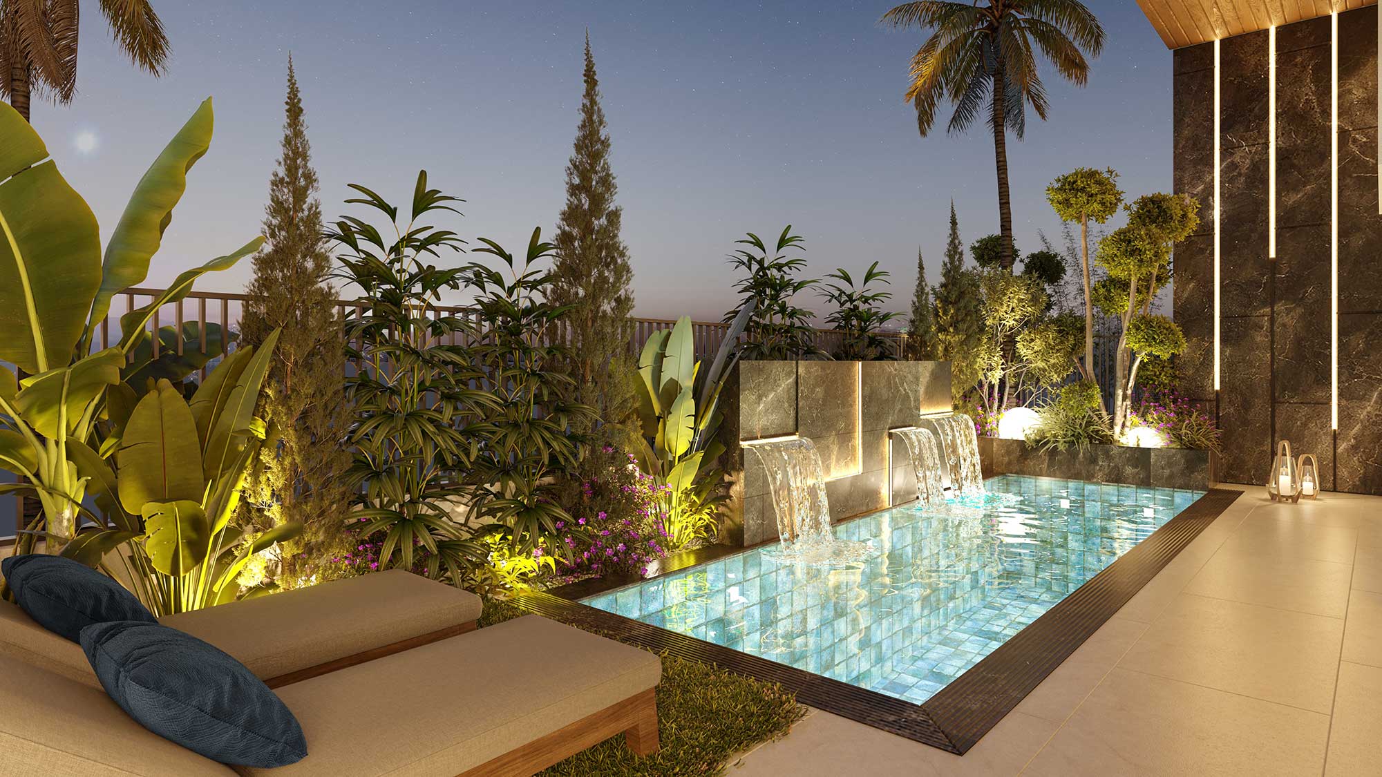 Les duplex de la résidence Vogue disposent d'une piscine privée, offrant un espace exclusif de détente et de luxe, parfait pour se rafraîchir et se relaxer en toute intimité.